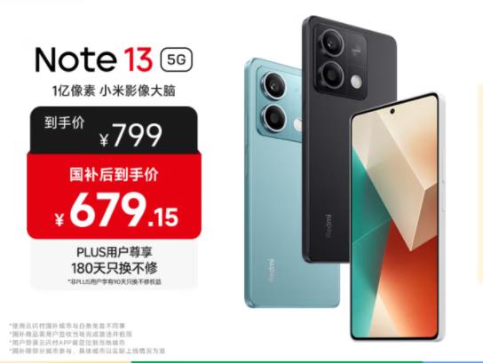 小米Redmi Note13 5G 国家补贴 1亿像素 超细四窄边OLED直屏 8GB+128GB 子夜黑 5G手机