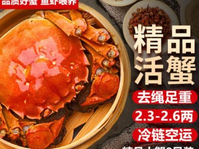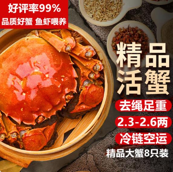 【活蟹】湖鲜阳澄 大闸蟹 去绳足重 2.3-2.6两 8只 鲜活六月黄现货超大螃蟹水产礼盒装