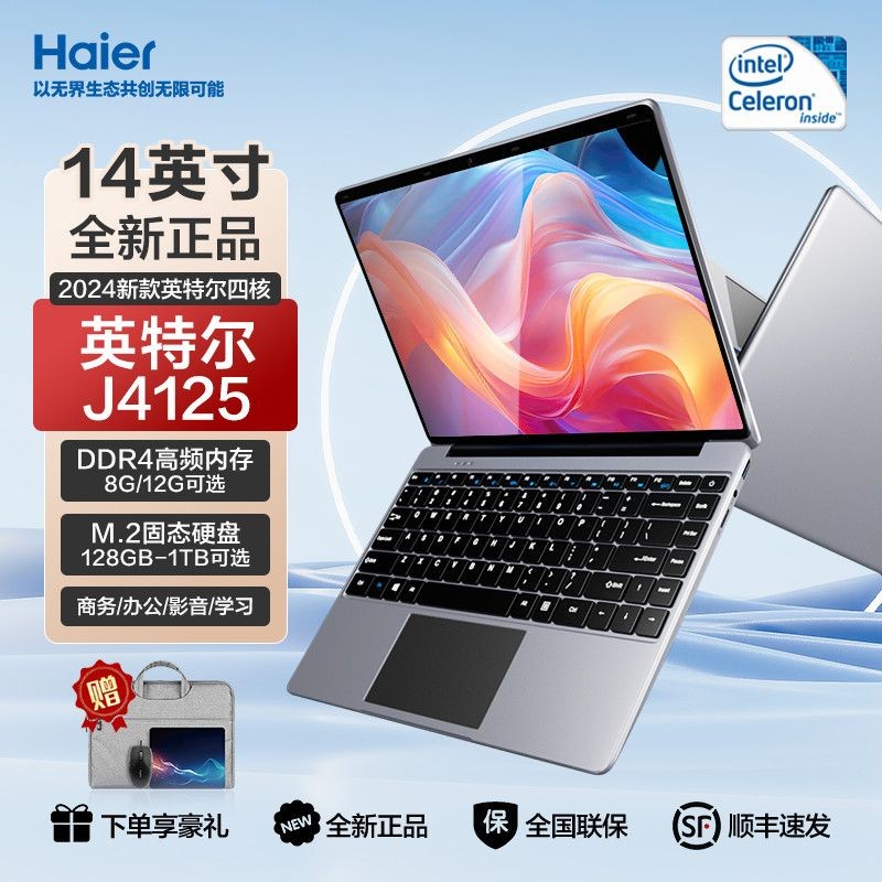 海尔2025全新英特尔四核笔记本电脑轻薄便携商务办公家用学生正品