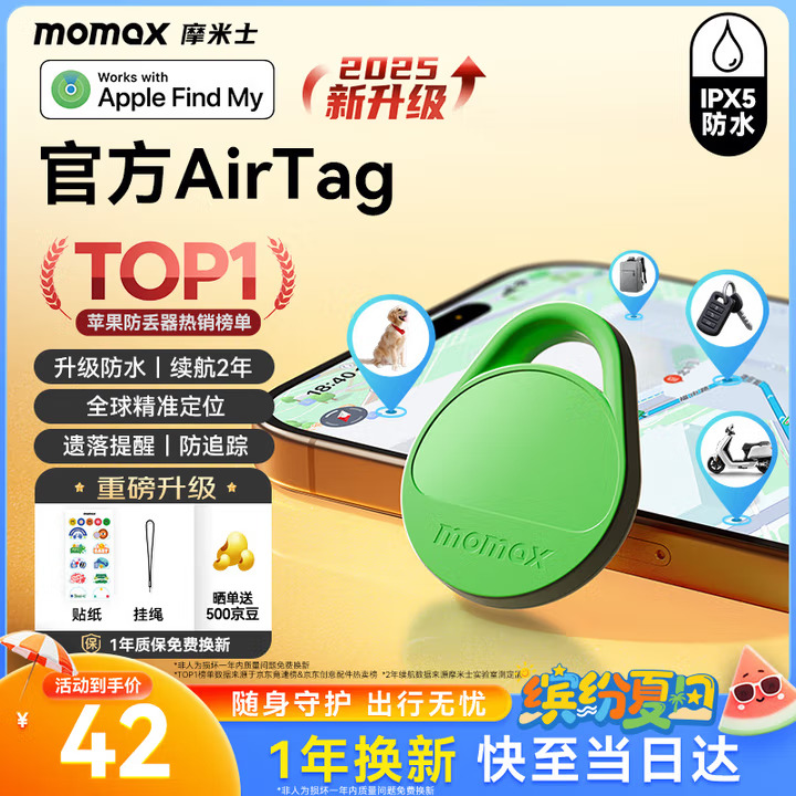 摩米士(MOMAX)airtag苹果官方认证定位追踪器 防丢器全球精准查找 适用苹果手机/宠物/儿童/老人/行李防丢定位