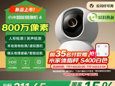 小米智能摄像机 4 家用摄像头800万像素4K超清室内监控360度无死角带夜视手机远程婴儿宠物家庭监控器
