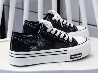 夏季薄款透气蕾丝帆布鞋女2024年新款夏款镂空板鞋网面网鞋小白鞋