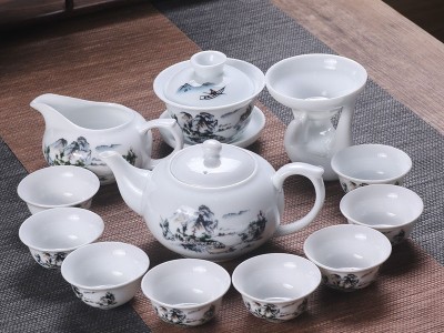 【送茶夹】茶具套装青花陶瓷家用泡茶器功夫盖碗整套简约茶杯特价