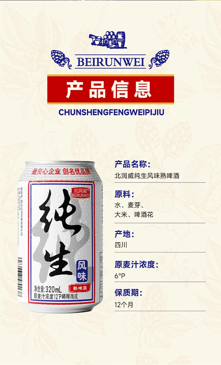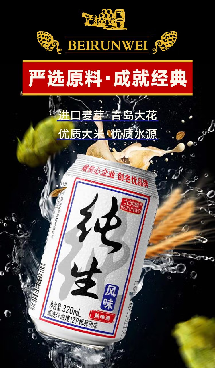 纯生风味熟啤酒听装易拉罐低度整箱啤酒 500mL 9罐