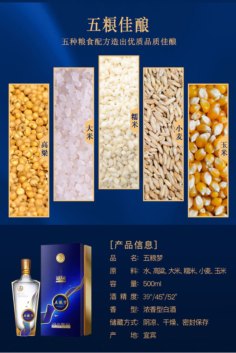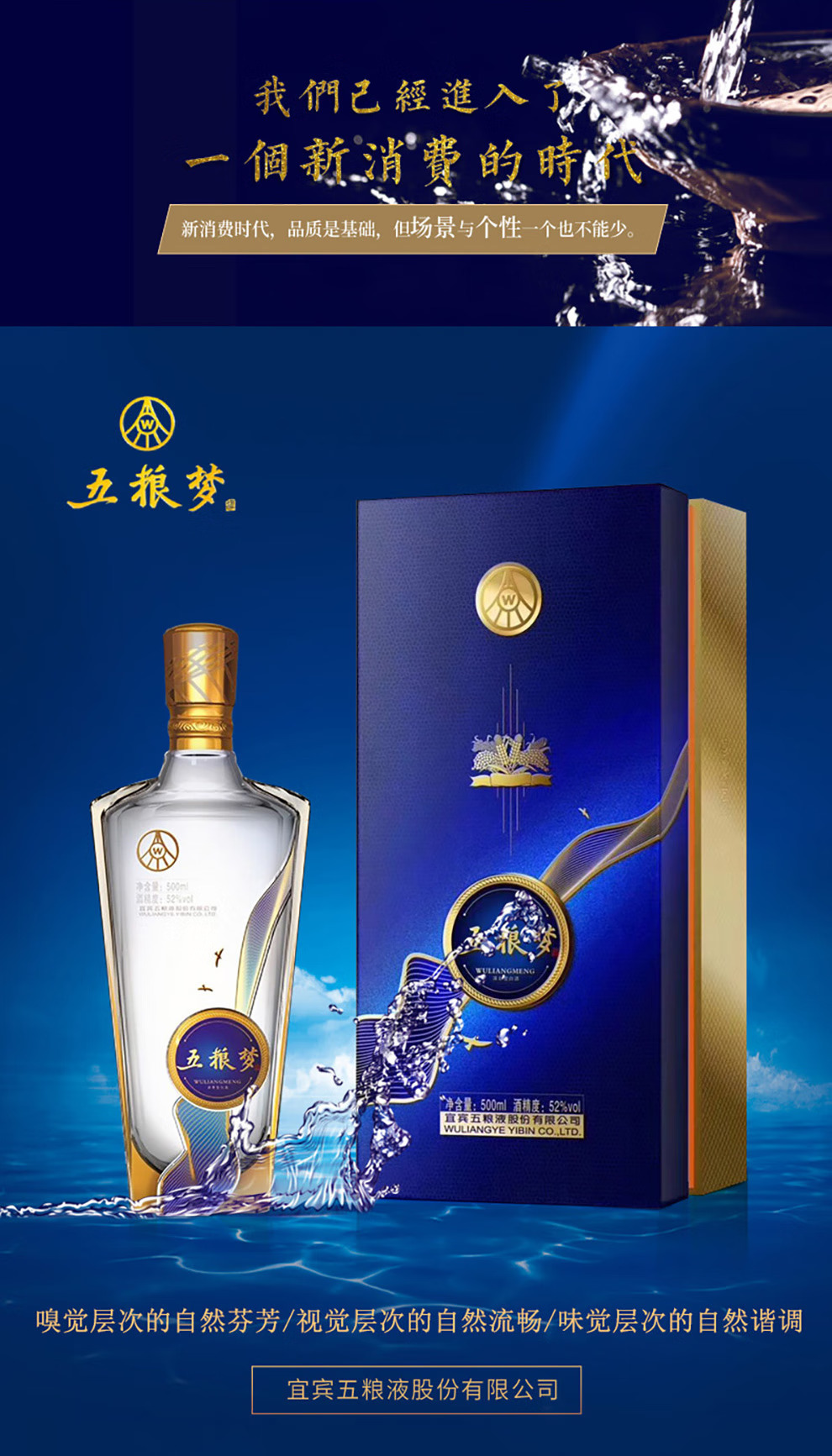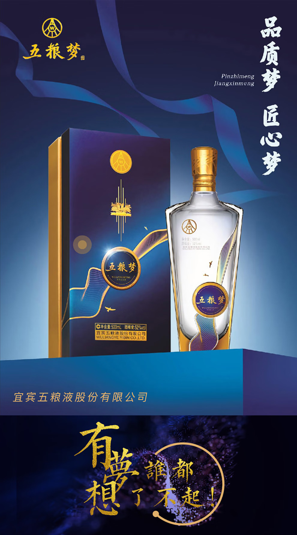 五粮液 五粮梦 2020年 浓香型白酒 52度 500ml 单瓶 陈年老酒
