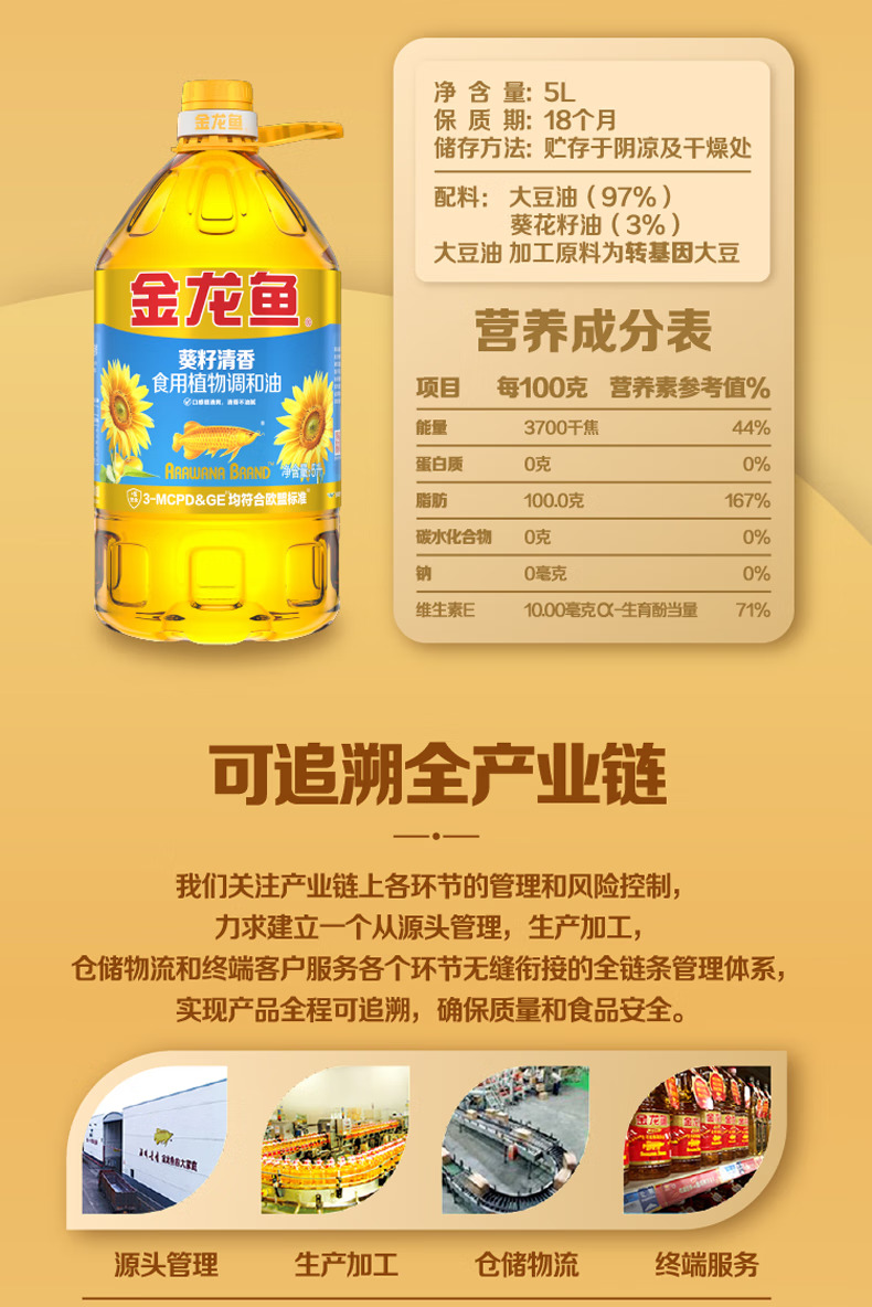 金龙鱼 食用油 葵花籽清香型调和油5L